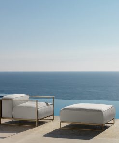 Les canapés et les fauteuils sont modulables et s’assemblent facilement entre elles pour varier la longueur en fonction de vos besoins. La structure est fabriquée en acier inoxydable thermolaqué. Le rembourrage en mousse à séchage rapide avec un tissu déhoussable est facile à entretenir. Selon les couleurs choisies, les lattes des accoudoirs sont en bois d’Accoya (iroko ou stoonwood) ou en travertin (de titane ou d’argent).