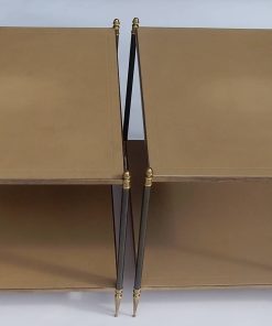 1950/70′ Paire de Tables Maison Jansen En Bronze Patiné Avec Plateaux Miroirs Vintage